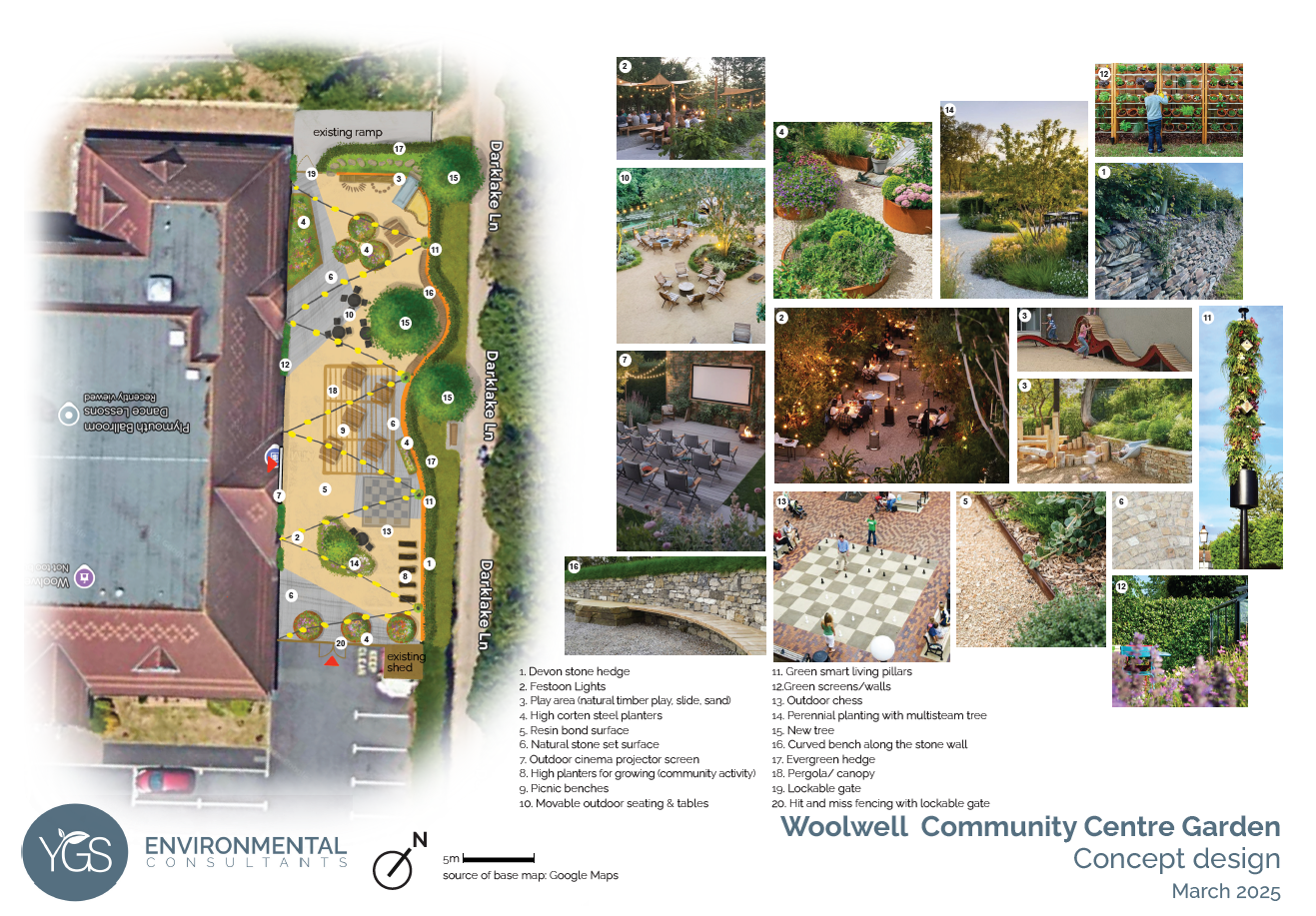 Space Landscape Architects were commissioned to design a concept for a new community garden and outdoor café space at the Woolwell Centre. The project reimagined a small section of the existing car park as a multifunctional and welcoming outdoor area.